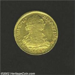 Carlos III Gold 8 Escudos 1789IJ, KM82.1a, Nice XF, full and attractive strike. Important notice: We expect to be auctioning lots at the rate of 200-250 per hour. Sometimes eBay Premier live bid software cannot keep up with that pace, so we strongly recommend that you place a realistic proxy bid now as insurance to avoid disappointment. Also please note that all Heritage/CAA lots purchased through eBay Premier carry a 20% Buyer's Premium. Please make sure you read the Terms and Conditions.