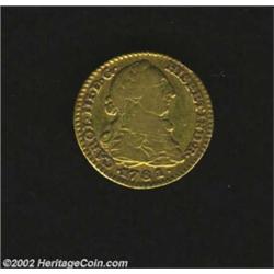 Carlos III Gold Escudo 1781M-PJ, KM416.1, F-VF quite decent for this grade. From the Hans A. Land Co