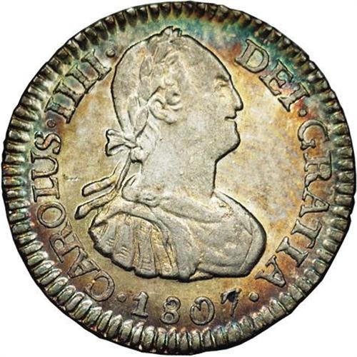 Carlos IIII 1/2 Real 1807-PJ, KM69, MS64 NGC, a choice Carlos IIII 1/2 Real 1807-PJ,