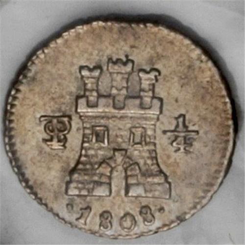 <B>Carlos IIII 1/4 Real 1808, </B></I>KM82, lightly toned UNC, an attractive, original coin.