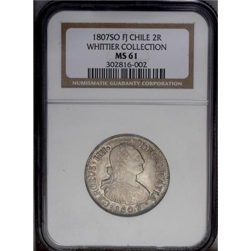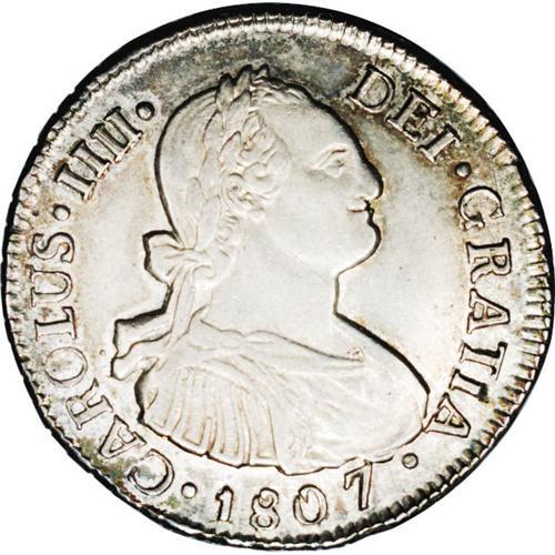 Carlos IIII 2 Reales 1807FJ-So, KM59, MS61 NGC, a compl Carlos IIII 2 Reales 1807FJ-So,
