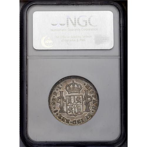 <B>Carlos IIII 2 Reales 1807FJ-So, </B></I>KM59, MS61 NGC, a completely original example with strong details and attractive medium patina.