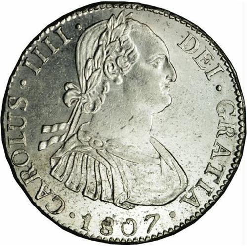Carlos IIII 4 Reales 1807-PJ, KM72, MS62 NGC, fully lus Carlos IIII 4 Reales 1807-PJ,