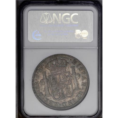 <B>Carlos IIII 8 Reales 1796Mo-FM, </B></I>KM109, MS61 NGC, an exceptionally well-struck and attractive example with deep, multicolored patina. Although this type is common in grades up to XF-AU, it is surprisingly elusive in mint state.