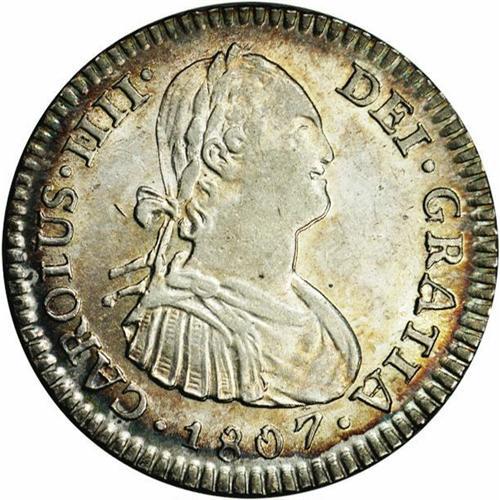Carlos IIII Real 1807-PJ, KM70, MS63 NGC, a glorious co Carlos IIII Real 1807-PJ,
