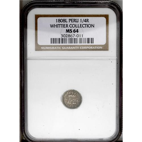 Carlos IV 1/4 Real 1808-L, KM102.2, MS64 NGC, deeply to Carlos IV 1/4 Real 1808-L,
