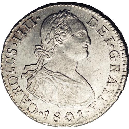 Carlos IV 2 Reales 1801-IJ, KM95, MS64 NGC, a remarkabl Carlos IV 2 Reales 1801-IJ,