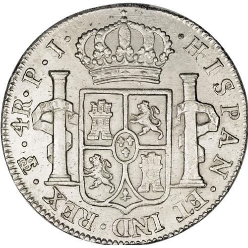 Carlos IV 4 Reales 1806-PJ, KM72, choice AU-UNC, fully