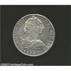 Carlos IV 8 Reales 1790-FM, KM108, bust of Carlos III, Choice EF-AU, bold details and very attractive. Important notice: We expect to be auctioning lots at the rate of 200-250 per hour. Sometimes eBay Premier live bid software cannot keep up with that pace, so we strongly recommend that you place a realistic proxy bid now as insurance to avoid disappointment. Also please note that all Heritage/CAA lots purchased through eBay Premier carry a 20% Buyer's Premium. Please make sure you read the Terms and Conditions.