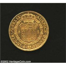 Carlos IV Gold 8 Escudos 1801-FM, KM159, Superb AU-UNC with prooflike mint lustre. Really a fantastic example of a colonial 8 Escudos. Important notice: We expect to be auctioning lots at the rate of 200-250 per hour. Sometimes eBay Premier live bid software cannot keep up with that pace, so we strongly recommend that you place a realistic proxy bid now as insurance to avoid disappointment. Also please note that all Heritage/CAA lots purchased through eBay Premier carry a 20% Buyer's Premium. Please make sure you read the Terms and Conditions.