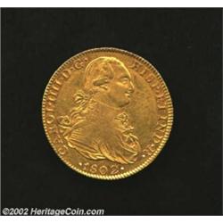 Carlos IV Gold 8 Escudos 1802-FT, KM159, EF, slightly soft strike on the King's shoulder but with bo