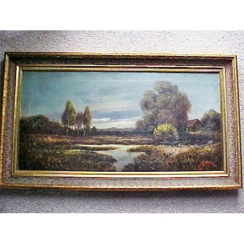 Great, clean and colorful, well-executed early century landscape signed "C.Lopez" L/R. Old gallery label verso on stretcher bar reads:"Hobbs & Sutphen, E.Adams St. Chicago"; prob. Carlos Lopez of Ann Arbor, Mich. listed for 'genre, portraits, farms', etc. in Davenport's Art Reference Guide. Lopez was a WPA artist born in 1908, who's works have sold into the thousands of dollars...He died in 1953. Thanks for looking, Chas.