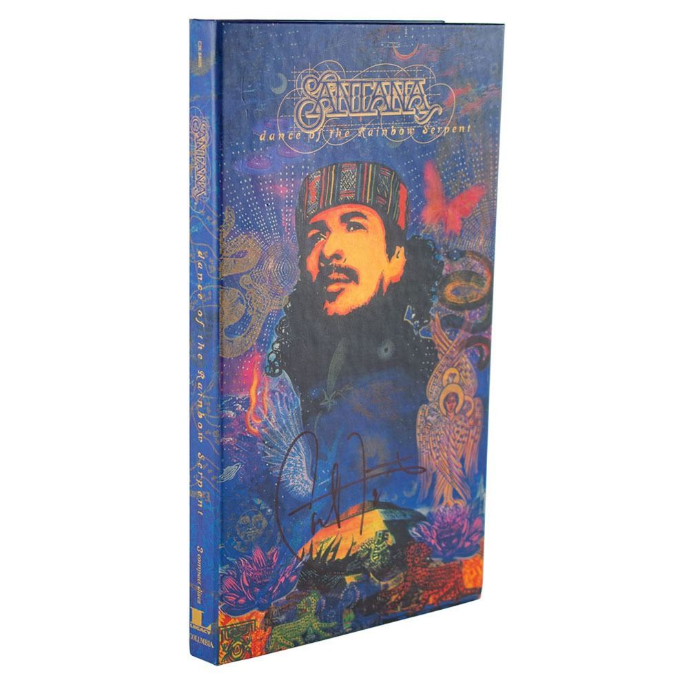 Dance of the Rainbow Serpent CD box set by Carlos Santana, who has signed the front cover in black felt tip. In fine condition. The CDs are included. Accompanied by an unused 'working' backstage pass for a Santana concert as part of the 2012 Shape Shifter Tour.