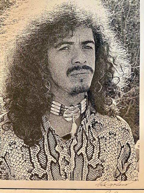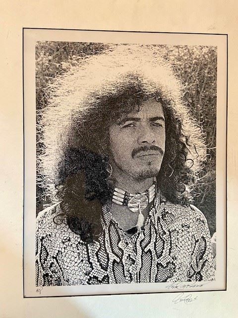 A very young Carlos Santana circa 1973. 14.5x18.5" matted photograph signed by Rock Gods photographer Robert M. Knight. Matte can be discarded.