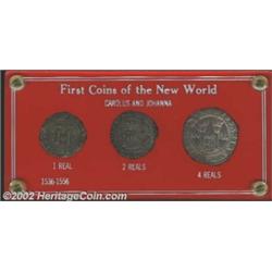Carlos and Johanna, set of three including 4, 2 and 1 Reales, all presented in a custom plastic hold