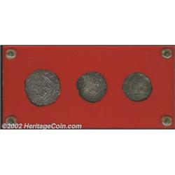 Carlos and Johanna, set of three including 4, 2 and 1 Reales, all presented in a custom plastic holder. The 4 Reales grades bold VF with a planchet crack and is assayer L. The 2 Reales is a crude VF with some oxidation and is assayer L. The 1 Real is AVF and assayer G. An attractive and desirable set of these early coins of America. Important notice: We expect to be auctioning lots at the rate of 200-250 per hour. Sometimes eBay Premier live bid software cannot keep up with that pace, so we strongly recommend that you place a realistic proxy bid now as insurance to avoid disappointment. Also please note that all Heritage/CAA lots purchased through eBay Premier carry a 20% Buyer's Premium. Please make sure you read the Terms and Conditions.
