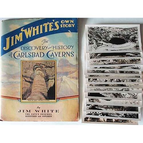 A 32 page booklet of the discovery and history of Carlsbad Caverns in Jim White's own story, the cave's original discoverer and explorer. Front and back covers are a linen material and the first page is autographed by the author. Inside are gorgeous color photos of the caverns as well as the fascinating story of the discovery in 1901 and the events leading up to the caverns becoming a national park. There are 14 black and white photographs of the never-before-seen cave taken by Ray V. Davis, a photographer in Carlsbad at the time who photographed the cave at Jim White's request. The photographs are numbered and has the initials R.V.D at the bottom as well the name of the area photographed.