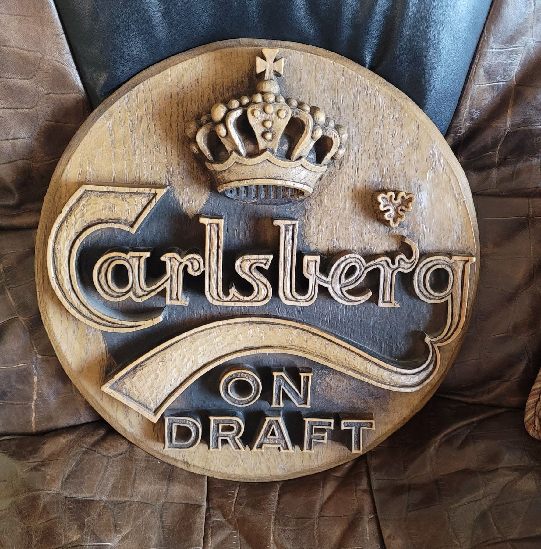 Faux wooden sign beer sign. 19 ½” diameter by 3” deep