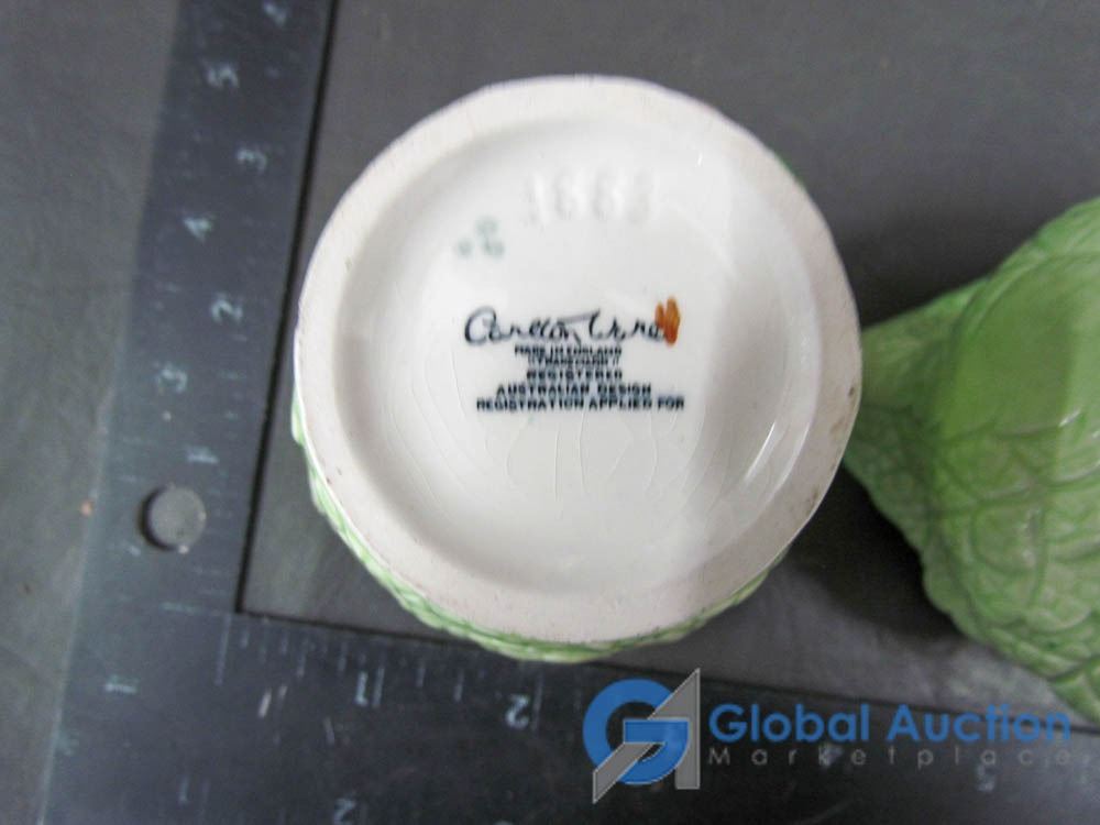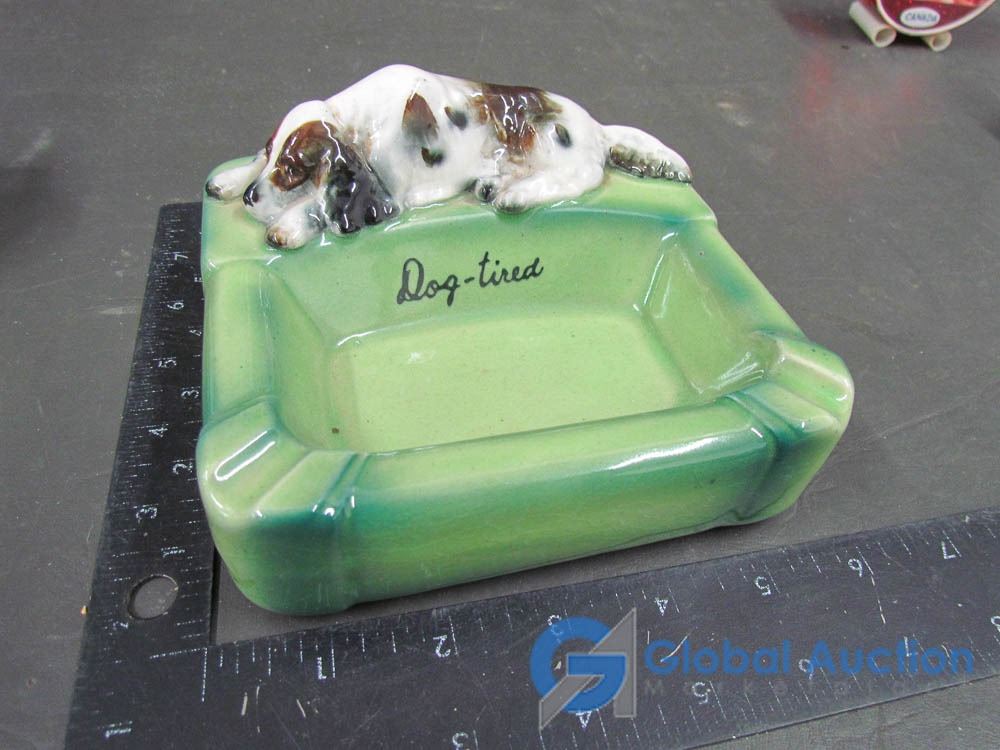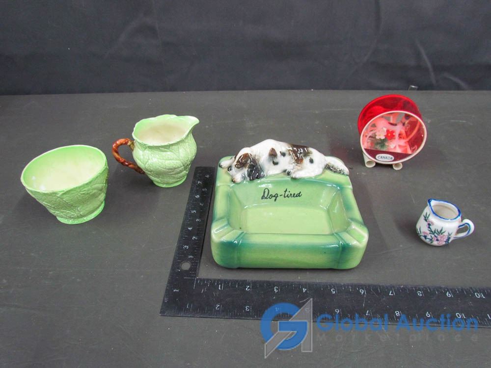 Carlton Ware Foxglove Pattern (1940s) 2pc. Set, Dog Tired Ashtray and Souvenir From Manitoba