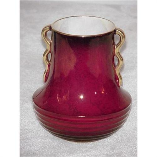 A Rouge Royale Vase, 5" tall, 4" in diameter, gold handles and luster interior. Art Deco era, very nice and in good condition no chips or cracks although there is crazing on the interior.
