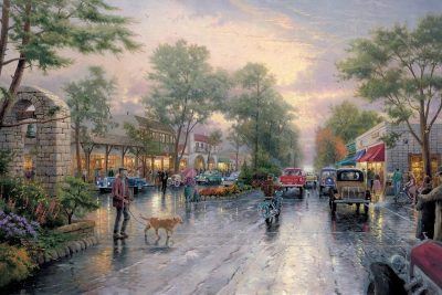 Thomas Kinkade Carmel Sunset on Ocean Ave is a limited edition paper lithograph, signed and numbered with COA. Image24x36".