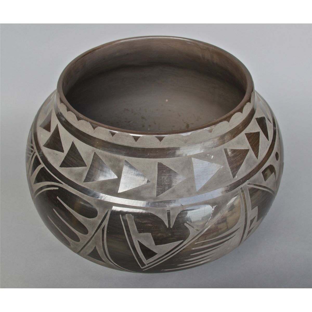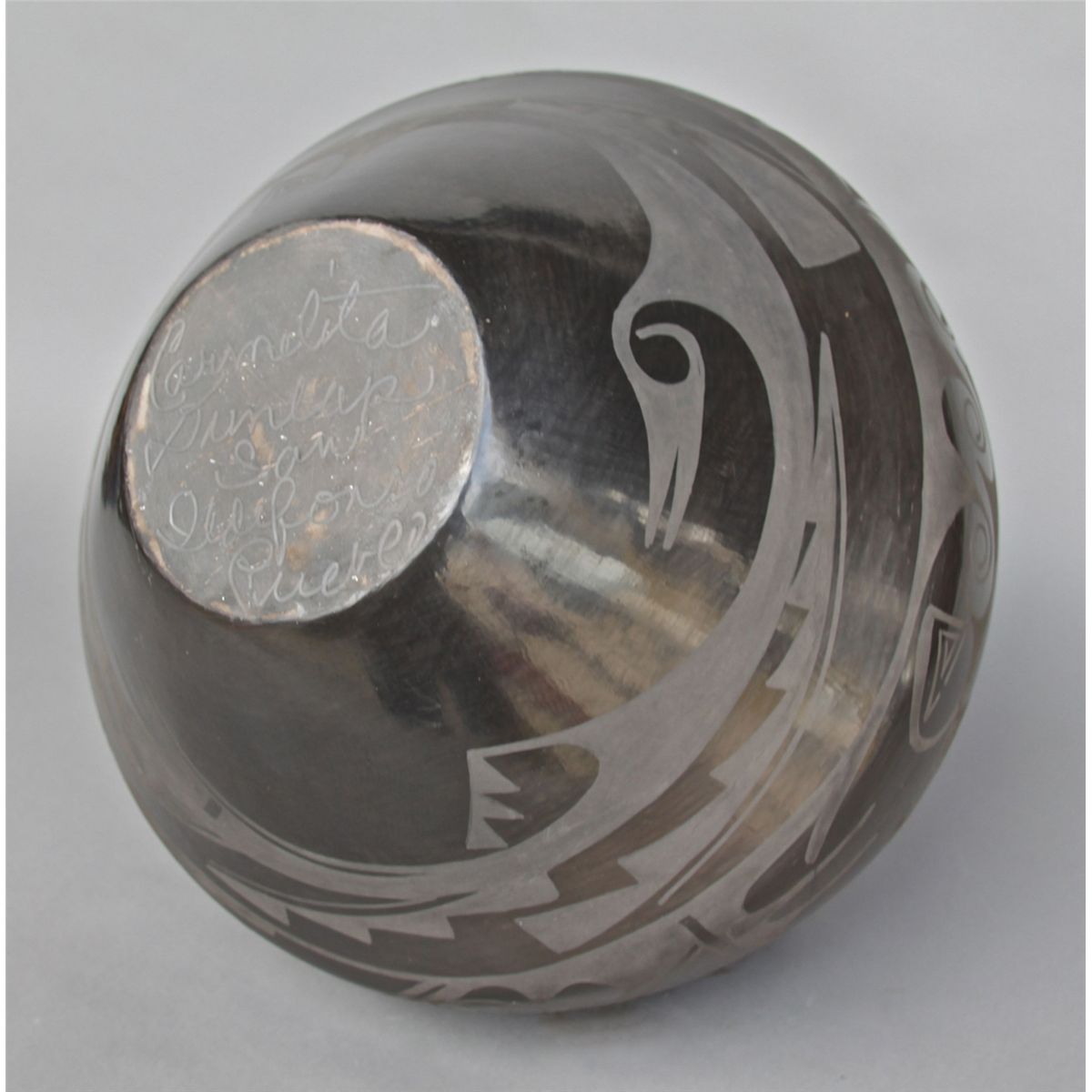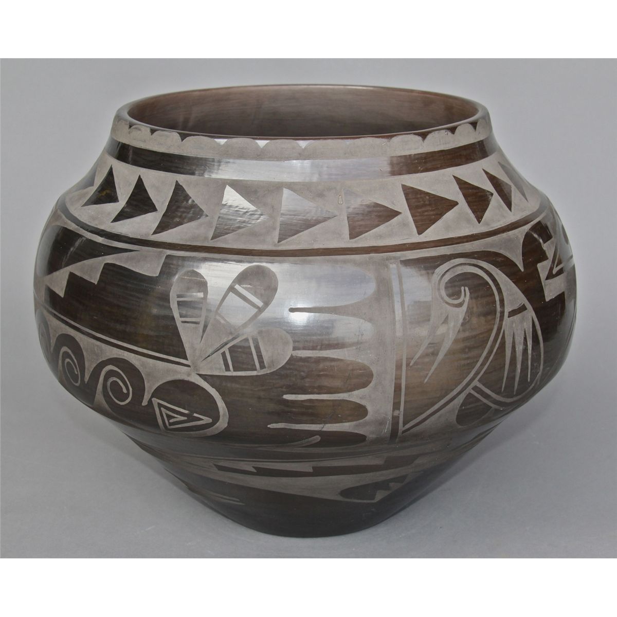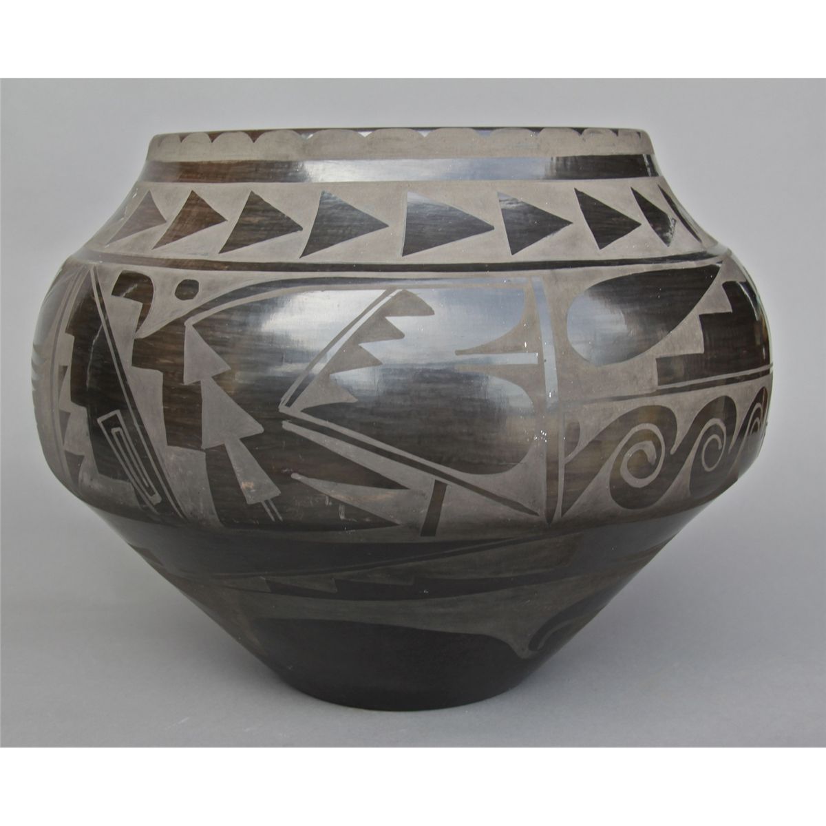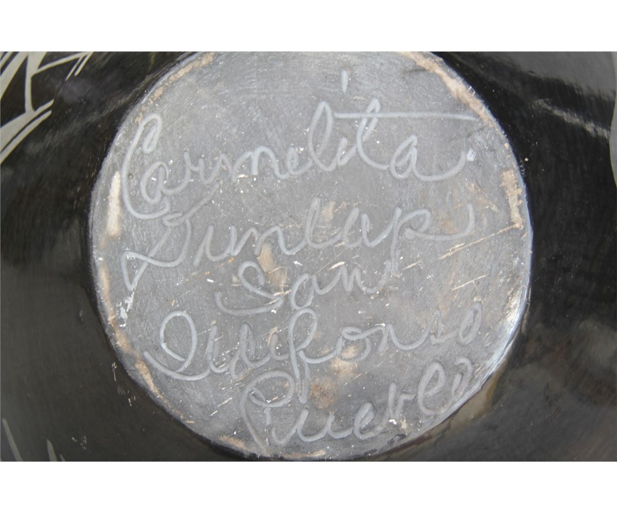 Carmelita Dunlap (1925-1999), San Ildefonso Pueblo Southwest, Signed Black on Black Pottery [Height/Length (in)= 12, Width (in)=16.5, Depth (in)=N/A, Weight (lbs)=25] With C.O.A. signed by Chief Joe Dan Osceola & Seminole Tribe. Go to: www.pangaea-auctions.com for more information about this collection.