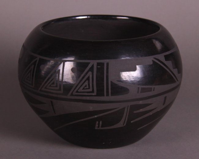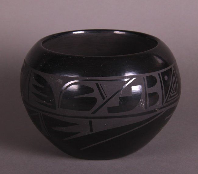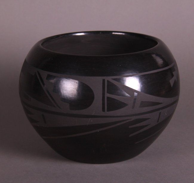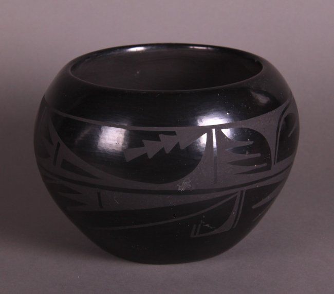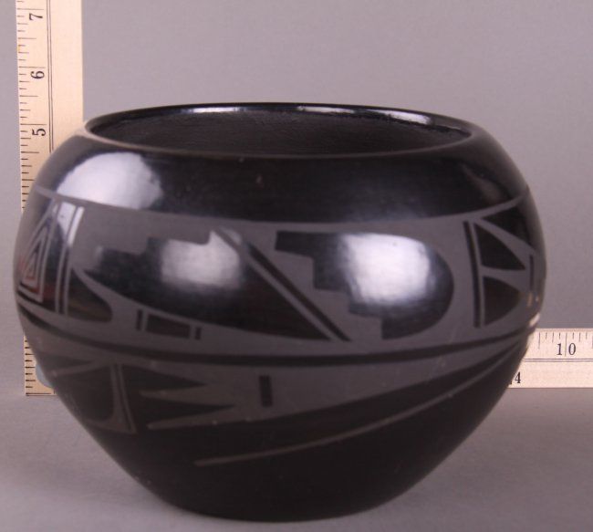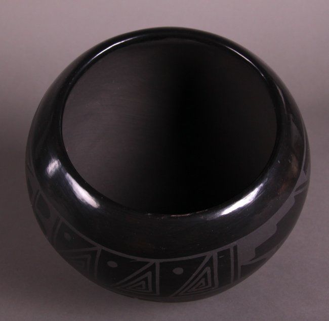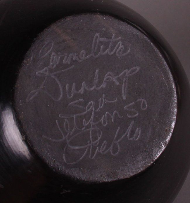 Carmelita Dunlap Medium Black on Black Pottery, signed. Private collection of Joe Dan Osceola. Comes with Certificate of Authenticity signed by Joe Dan Osceola. (Size: See Last Photo for Measurements)
