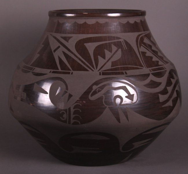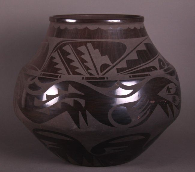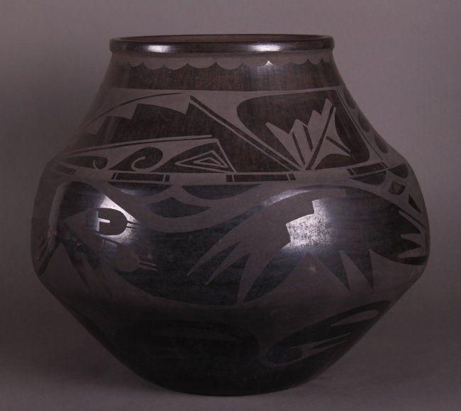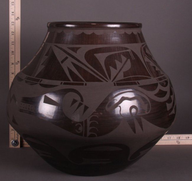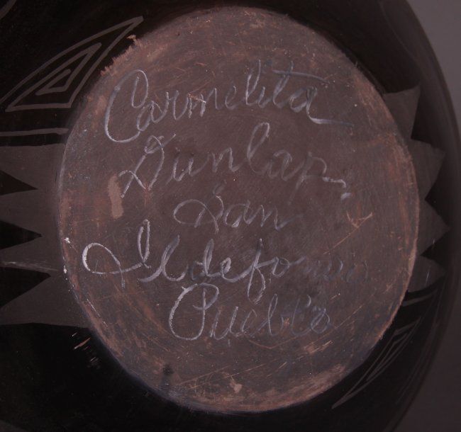 Carmelita Dunlap Very Large Black on Black Pottery, signed. Private collection of Joe Dan Osceola. Comes with Certificate of Authenticity signed by Joe Dan Osceola. (Size: See Last Photo for Measurements)