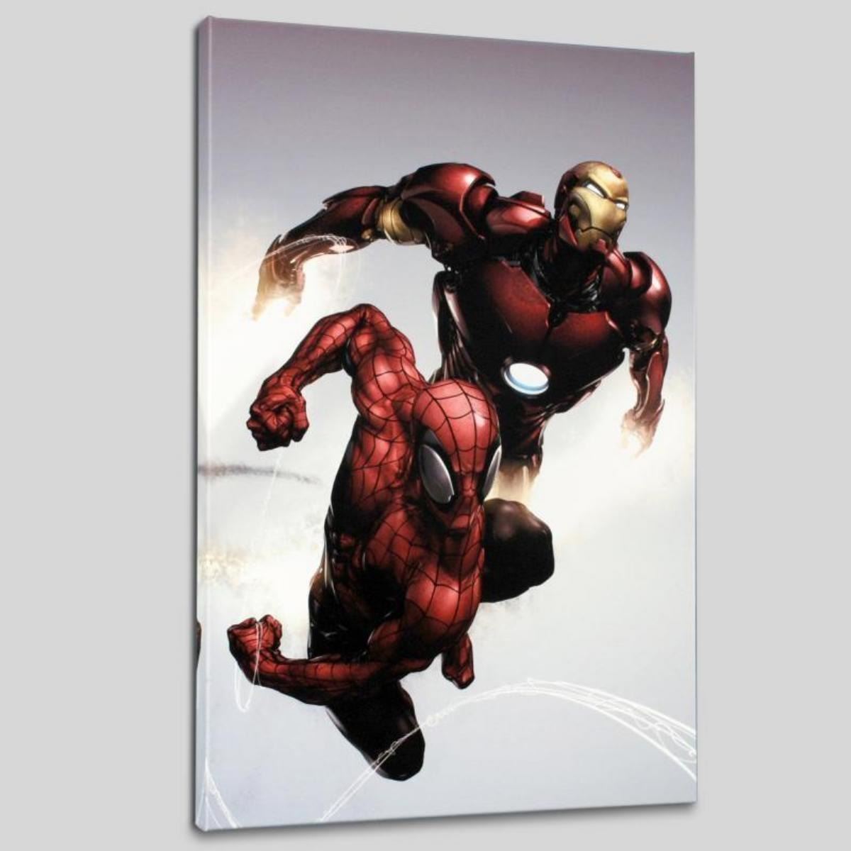 A piece of comic book history, this limited edition, from original art by Clayton Henry, depicts the classic characters Spider-Man and Iron Man. Artistic from an early age, Clayton Henry often uses comic books as his inspiration. After working on the independent comics Nine Rings Of Wu-Tang and Area 52, Marvel hired Henry to work on art for the X-Men franchise, among others. "Carnage #1" is a limited edition numbered giclee on canvas by Clayton Henry presented by Marvel Comics. This piece comes gallery wrapped. Includes Certificate of Authenticity! Measures approx. 18" x 27" (image).