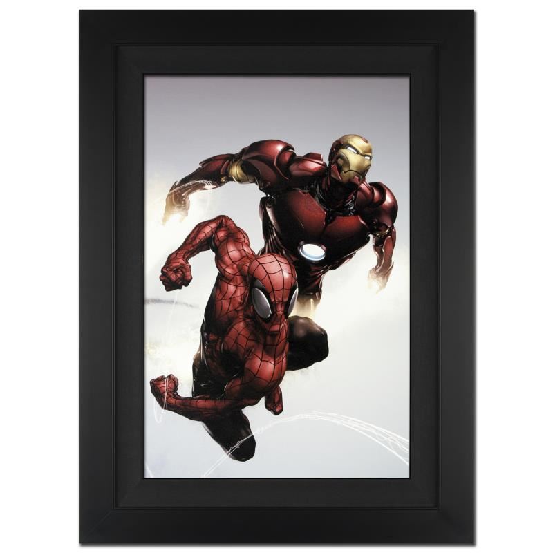 A piece of comic book history, this limited edition, from original art by Clayton Henry, depicts the classic characters Spider-Man and Iron Man. Artistic from an early age, Clayton Henry often uses comic books as his inspiration. After working on the independent comics Nine Rings Of Wu-Tang and Area 52, Marvel hired Henry to work on art for the X-Men franchise, among others. "Carnage #1" is an extremely limited edition giclee on canvas by Clayton Henry presented by Marvel Comics, hand signed by the great Stan Lee and numbered out of only 4! This piece comes custom framed and ready to hang. Includes Certificate of Authenticity! Measures approx. 29" x 40" (with frame); 22" x 33" (image).
