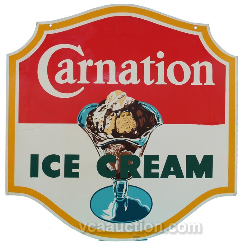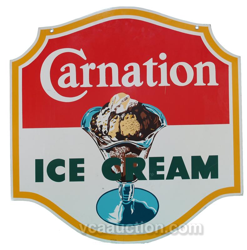 Carnation Ice Cream Double Sided Die-Cut Tin Sign - 35" x 36"