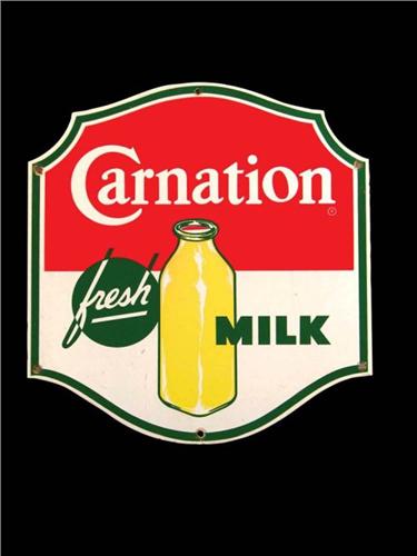 Carnation Milk One Sided Porcelain Sign. Near mint condition. 14 X 15 inches.