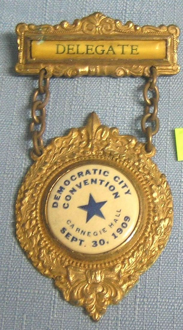 Antique Carnegie hall democratic convention badge dated 1909 scarce $450.00-$500.00