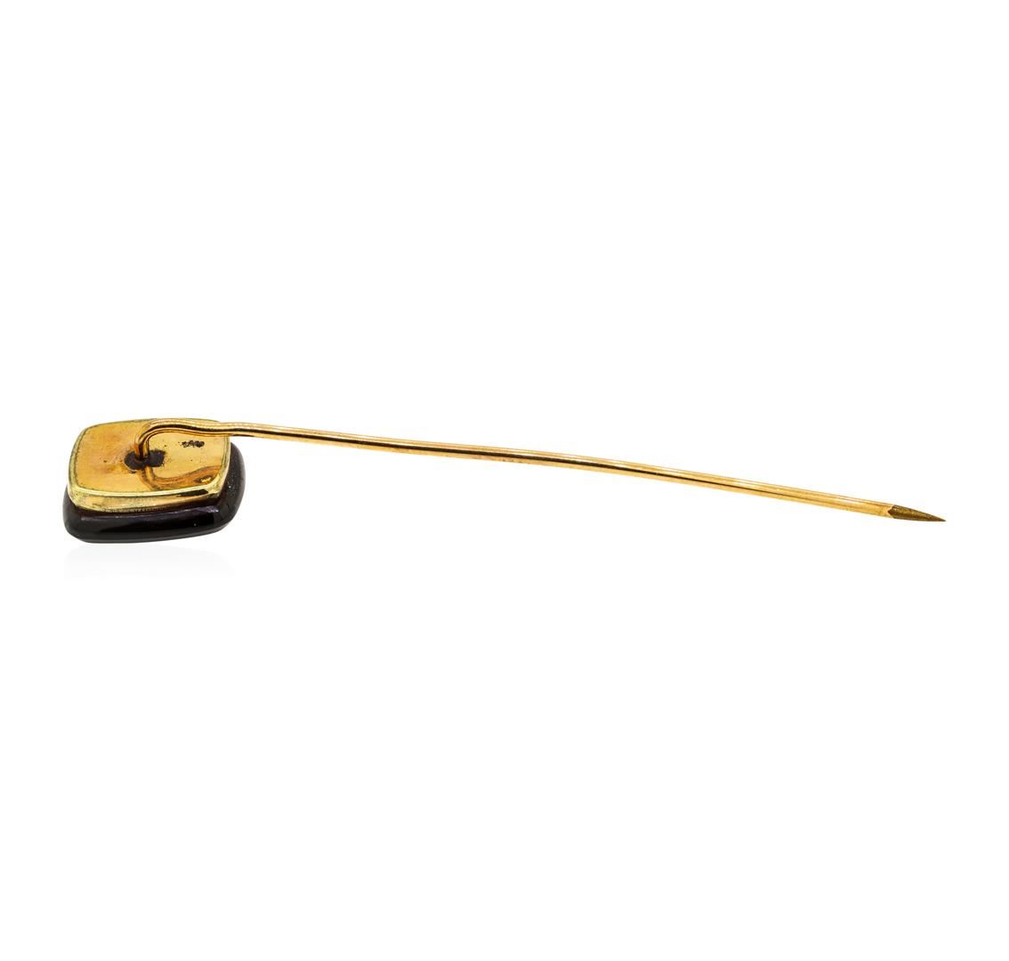 One stick pin featuring: 10KT yellow gold weighing 2.1 grams containing one carnelian cameo.