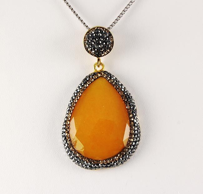 Carnelian Natural Stone Victorian Design Pendant **|**|** 15.70g Natural Stone Carnelian Drop Pendant in Victorian Design w/ CZ diamonds; 925 stamp gold plated ; MSRP: $100