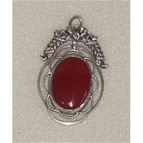 Silver metal pendant, 1 1/2" long x 1 1/16" wide. Handmade, set with oval carnelian. Marked "800" on loop. Condition is very good.