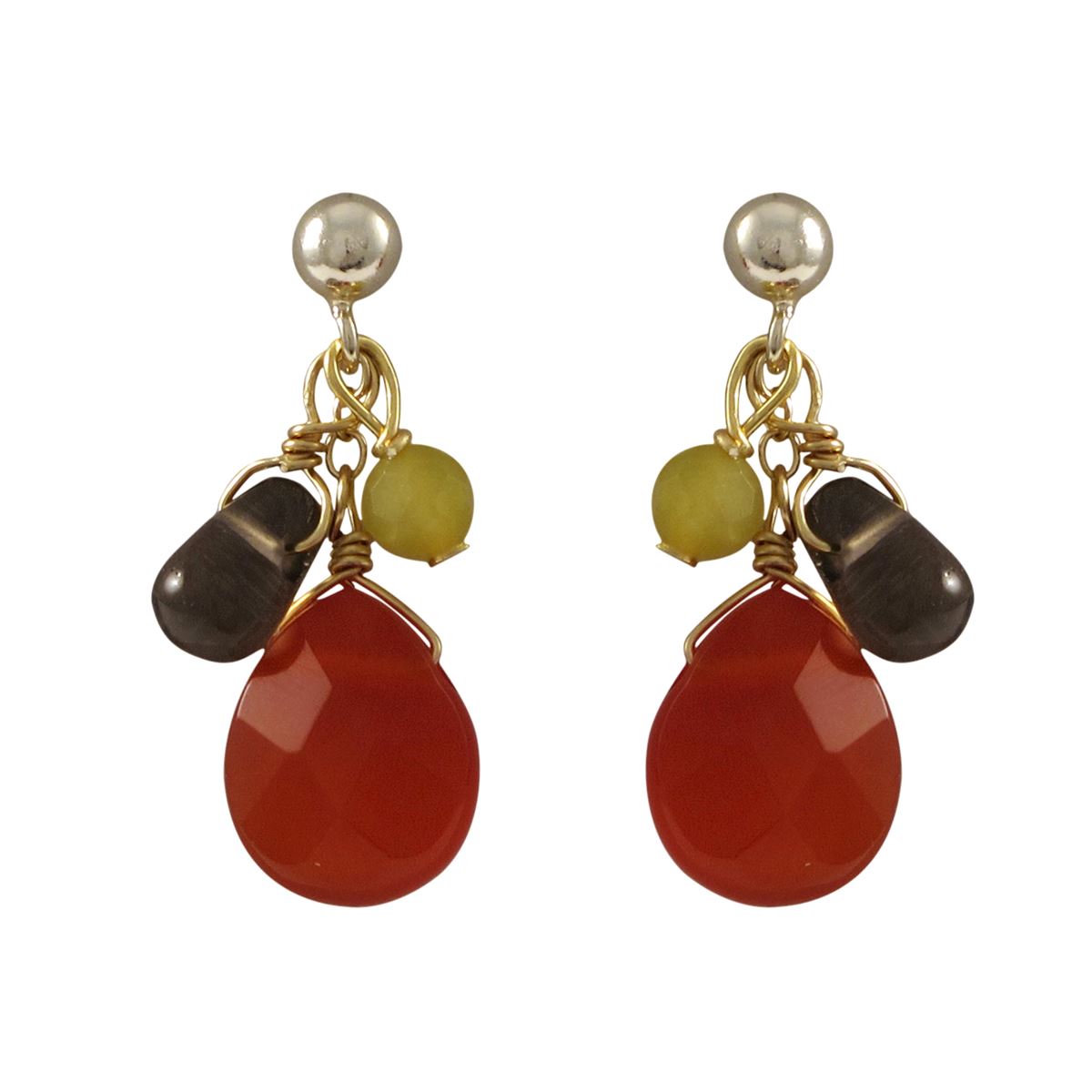 Carnelian Semi Precious Stone Gold Filled Post Earrings-0.87"