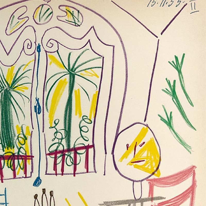 "Carnet de Californie 15.11.55-II" is a vintage lithograph on paper by Pablo Picasso (1881-1973). This piece is from Picassos Carnet de Californie Series and was printed in Paris France by Mourlot Studios in 1959. This piece comes framed. Includes Letter of Authenticity. Measures approx. 18.5" x 24.5" (frame) 10.5" x 16.5" (image).