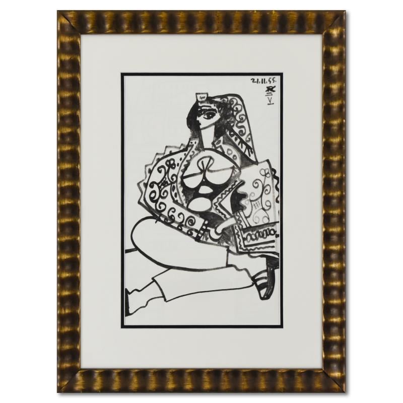 Carnet de Californie 21.11.55-V by Picasso (1881-1973). Please see photos and description for all available information. "Carnet de Californie 21.11.55-V" is a lithograph on paper by Pablo Picasso (1881-1973). This piece comes framed. Includes Letter of Authenticity. Measures approx. 18.5" x 24.5" (frame), 10" x 16" (image).