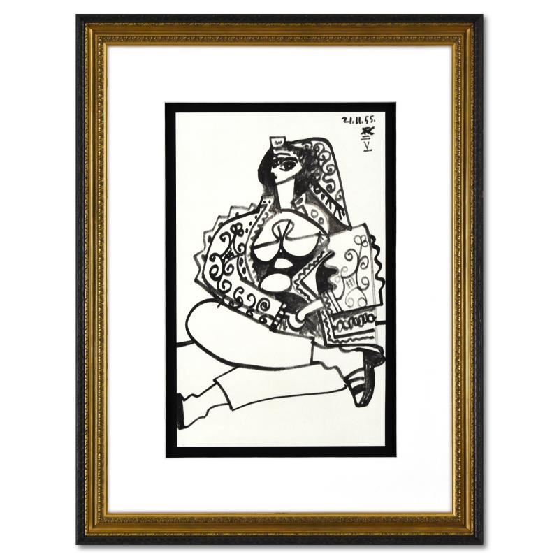 "Carnet de Californie 21.11.55-V" is a lithograph on paper by Pablo Picasso (1881-1973). This piece comes framed. Includes Letter of Authenticity. Measures approx. 20" x 26" (frame), 10" x 16" (image).