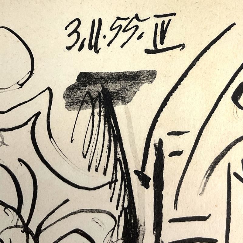 "Carnet de Californie 3.11.55-IV" is a vintage lithograph on paper by Pablo Picasso (1881-1973). This piece is from Picasso's Carnet de Californie Series and was printed in Paris, France by Mourlot Studios in 1959. This piece comes framed. Includes Letter of Authenticity. Measures approx. 18.5" x 24.5" (frame), 10.5" x 16.5" (image). This item requires special handling and may have a longer than usual turnaround.