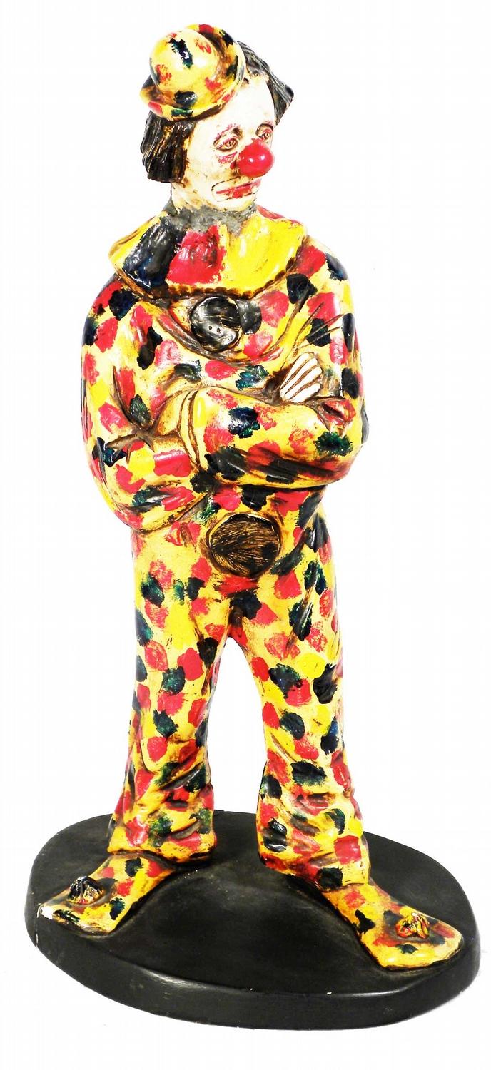Carnival Chalk Clown Figure. Small crack on base otherwise good condition. 21 inches tall.