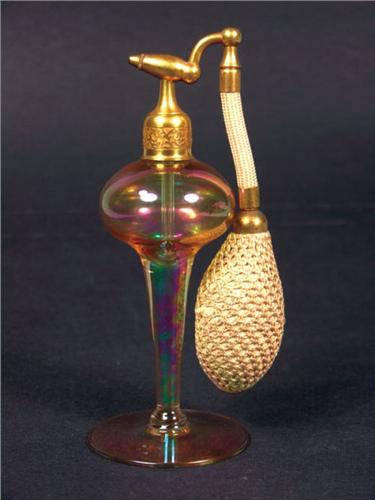 Carnival Glass Colored Atomizer. No chips or cracks. 6 1/4 inches tall.