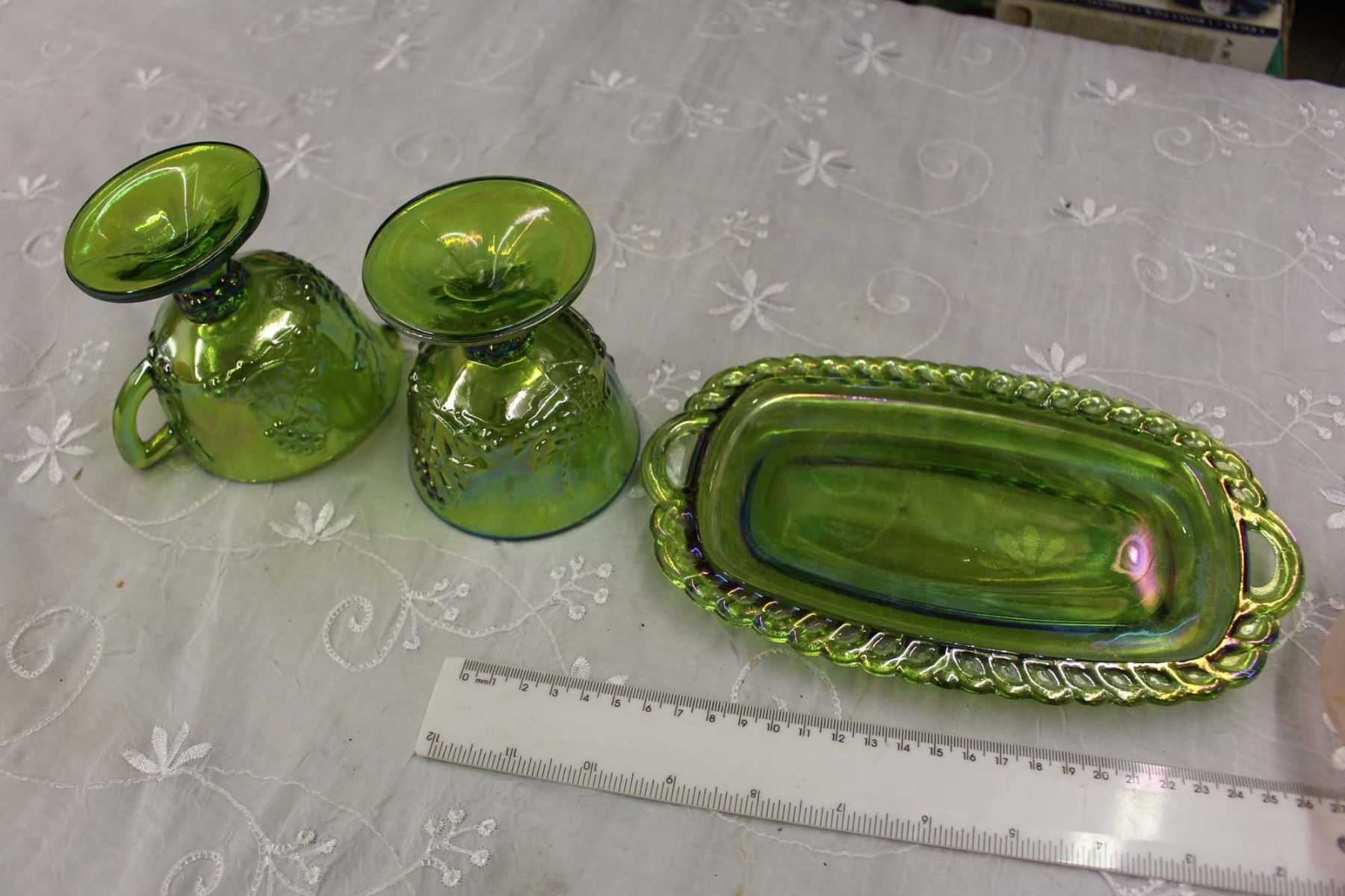 Carnival Glass Cream&Sugar Pieces (3) & Pink Depression Glass Pieces (2)