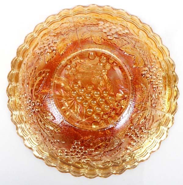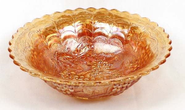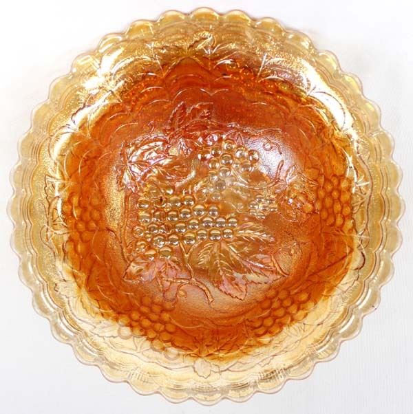 Carnival Glass Grape Bowl, measures 3'' x 10''.