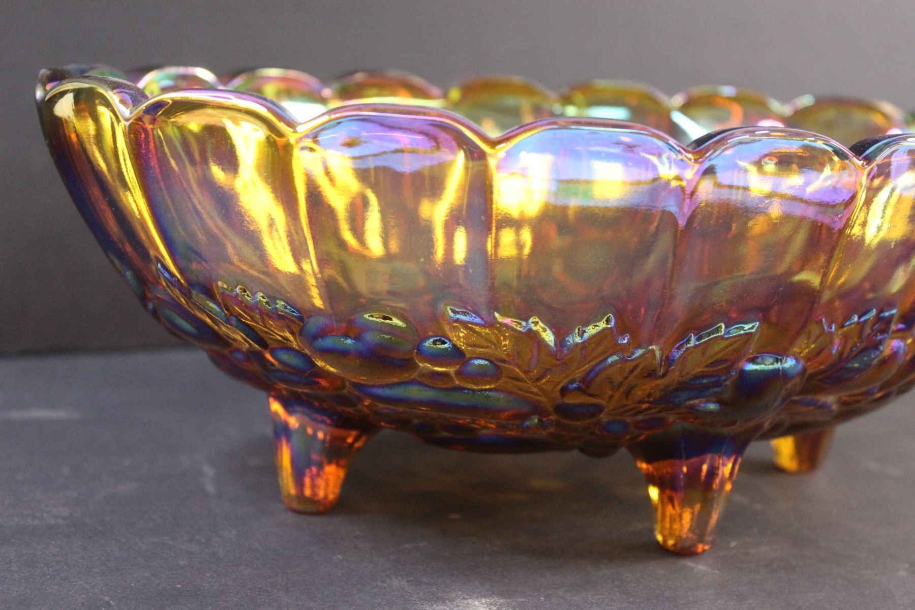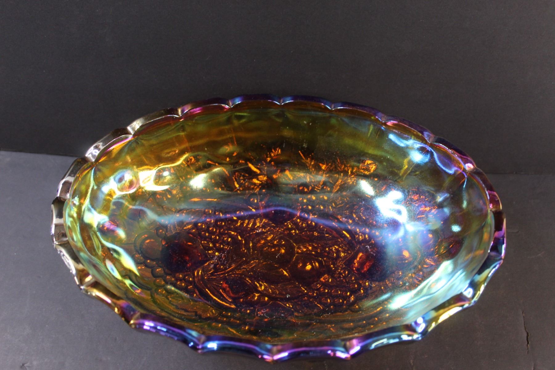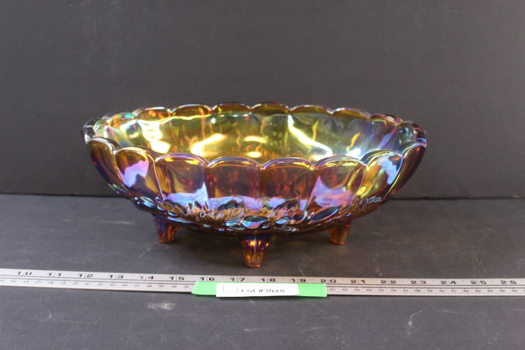 Carnival Glass Iridescent Footed Fruit Bowl - 12" x 4"