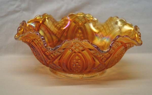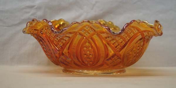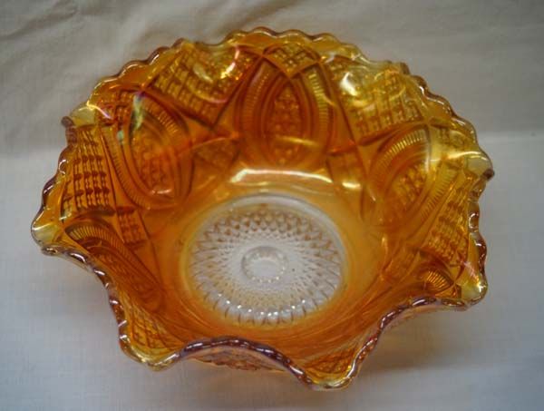 Carnival Glass Ruffled Sunflower Bowl, measures 3.5''H x 9''W