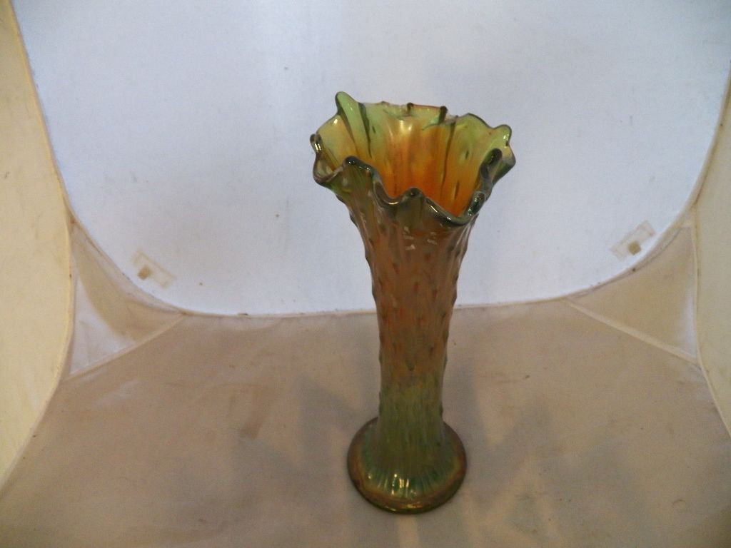 Carnival Glass Vase 11" Tall x 4" Wide some small chips on inside rim
