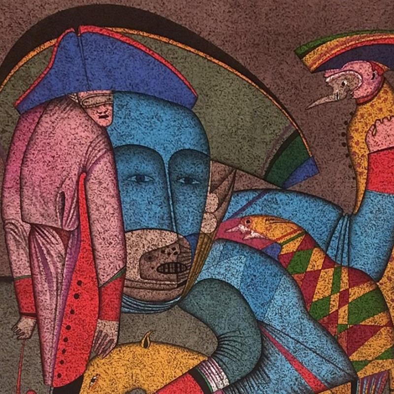 "Untitled 13" is a limited edition lithograph on paper from Mihail Chemiakin's Carnival Series, numbered and hand signed by the artist. Includes Certificate of Authenticity. Measures approx. 21" x 29.5" (border); 17.5" x 21" (image).