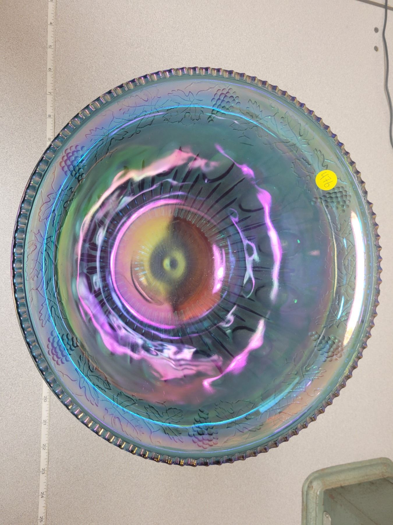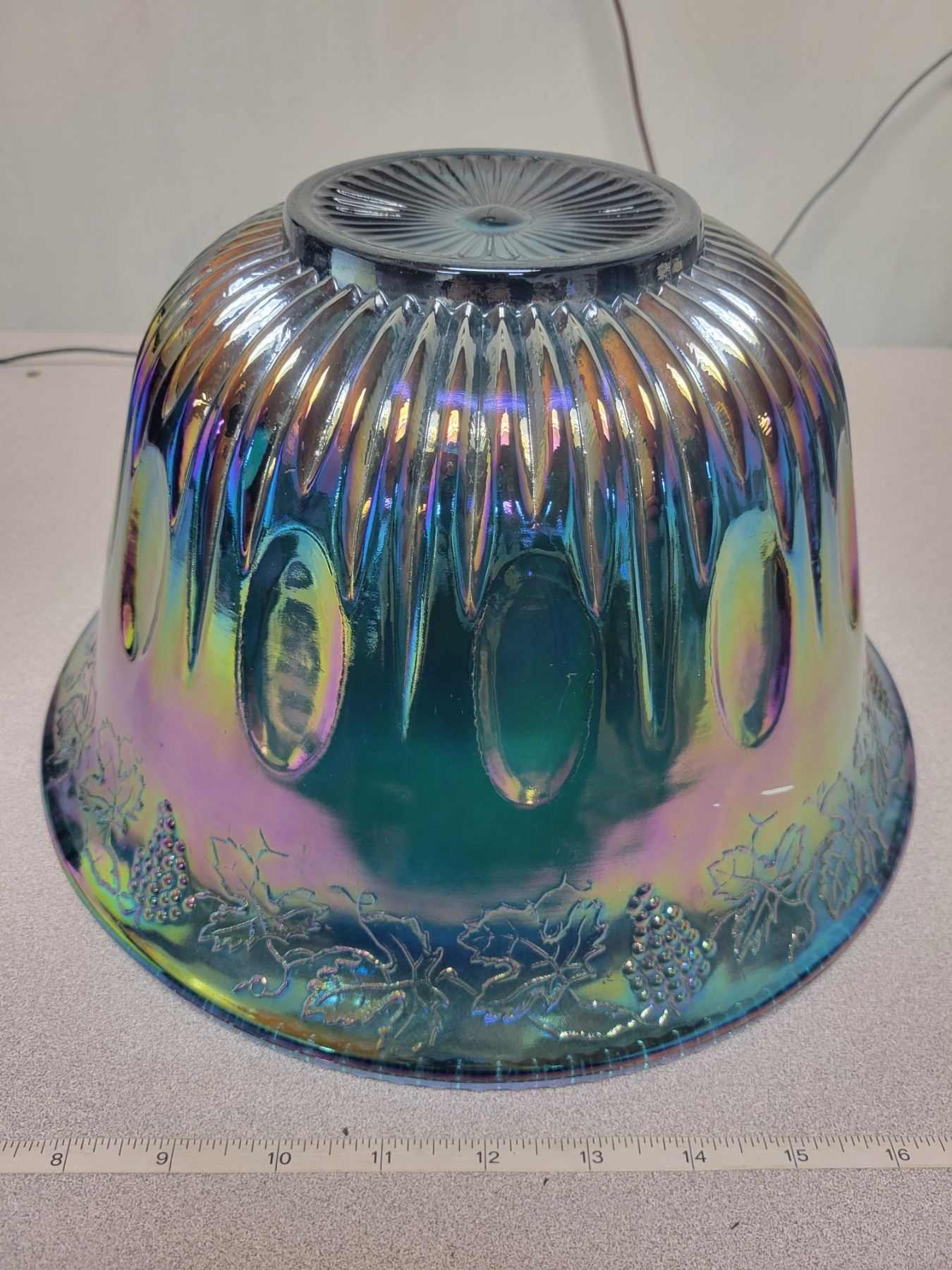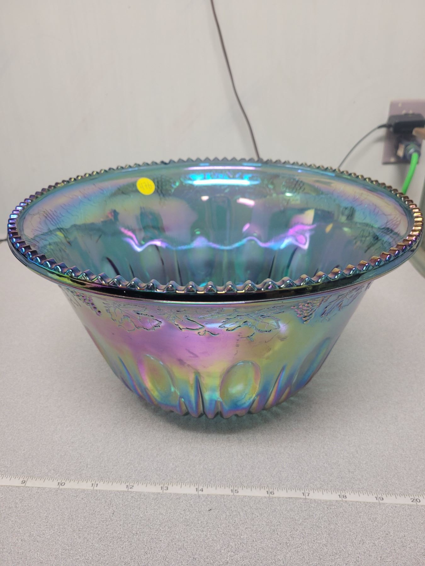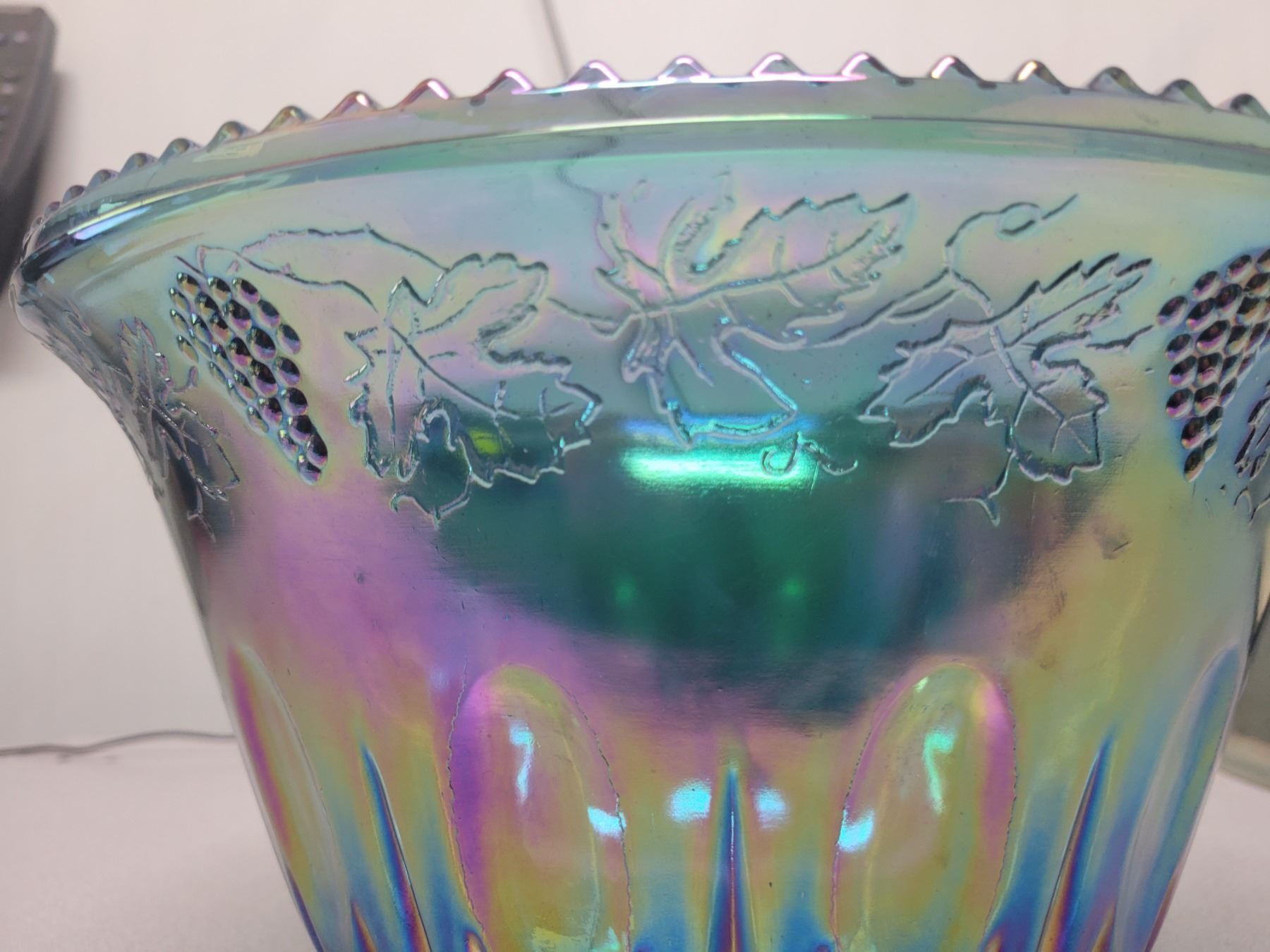 Carnival glass punch bowl grape pattern